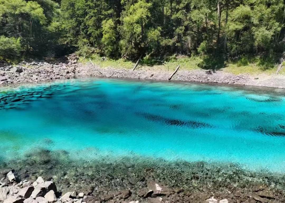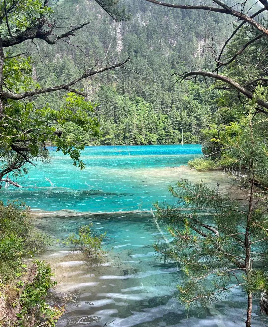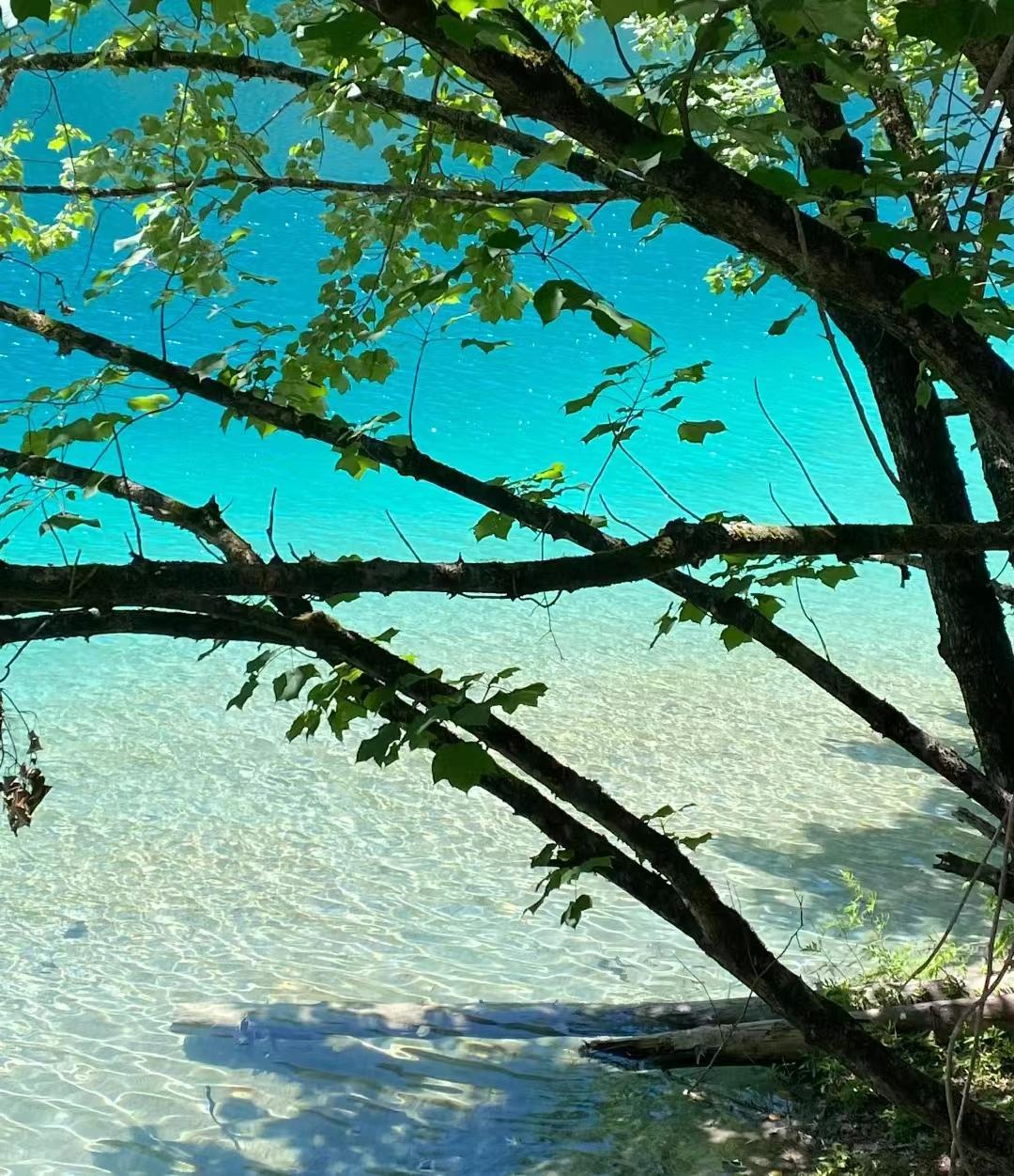 我看见了蓝宝石一样的海子,有小石潭记那样皆若空游无所依的小鱼群,有很久很久以前的参天大树,还有置身森林里听到令人无比放松的大自然的声音,比如泠泠作响的水,婉转动听的鸟,很多形容词在它面前都黯然失色了。